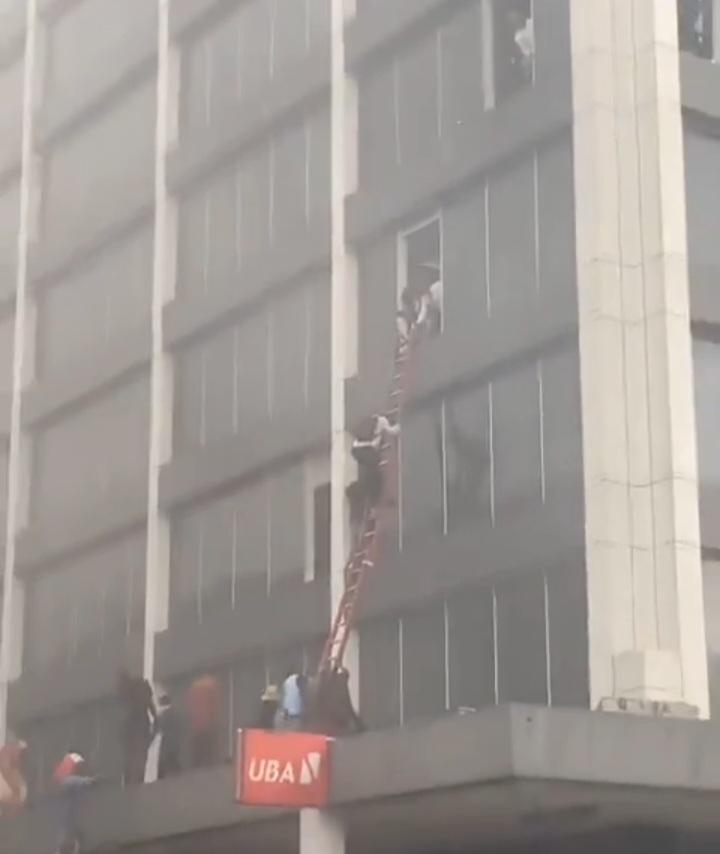 A major fire broke out on Tuesday afternoon at Afriland Tower on Broad Street, Lagos Island, where one of the United Bank for Africa (UBA) branches is located.
